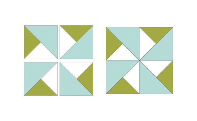 One pair of half-square triangles equals one pair of quarter-square triangles.