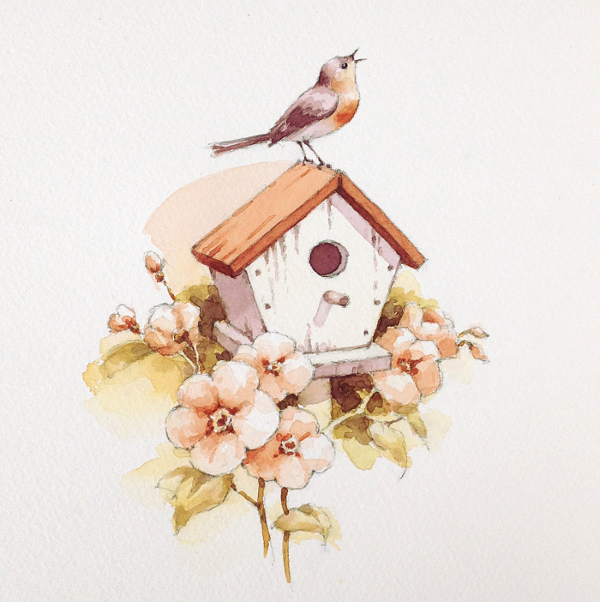 These step-by-step instructions will teach you to paint a special spring scene featuring a beautiful birdhouse and its chirping tenant.