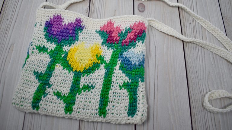Create a charming handmade bag with this colorful floral crochet pattern. Worked in durable cotton yarn using the center single crochet, the bag features a vibrant flower design created from a simple colorwork chart. The compact bag is perfect for everyday essentials and includes a long, crocheted strap for comfortable crossbody wear. Designed for intermediate crocheters, this project combines texture, colorwork, and sturdy construction for a stylish and practical accessory.
